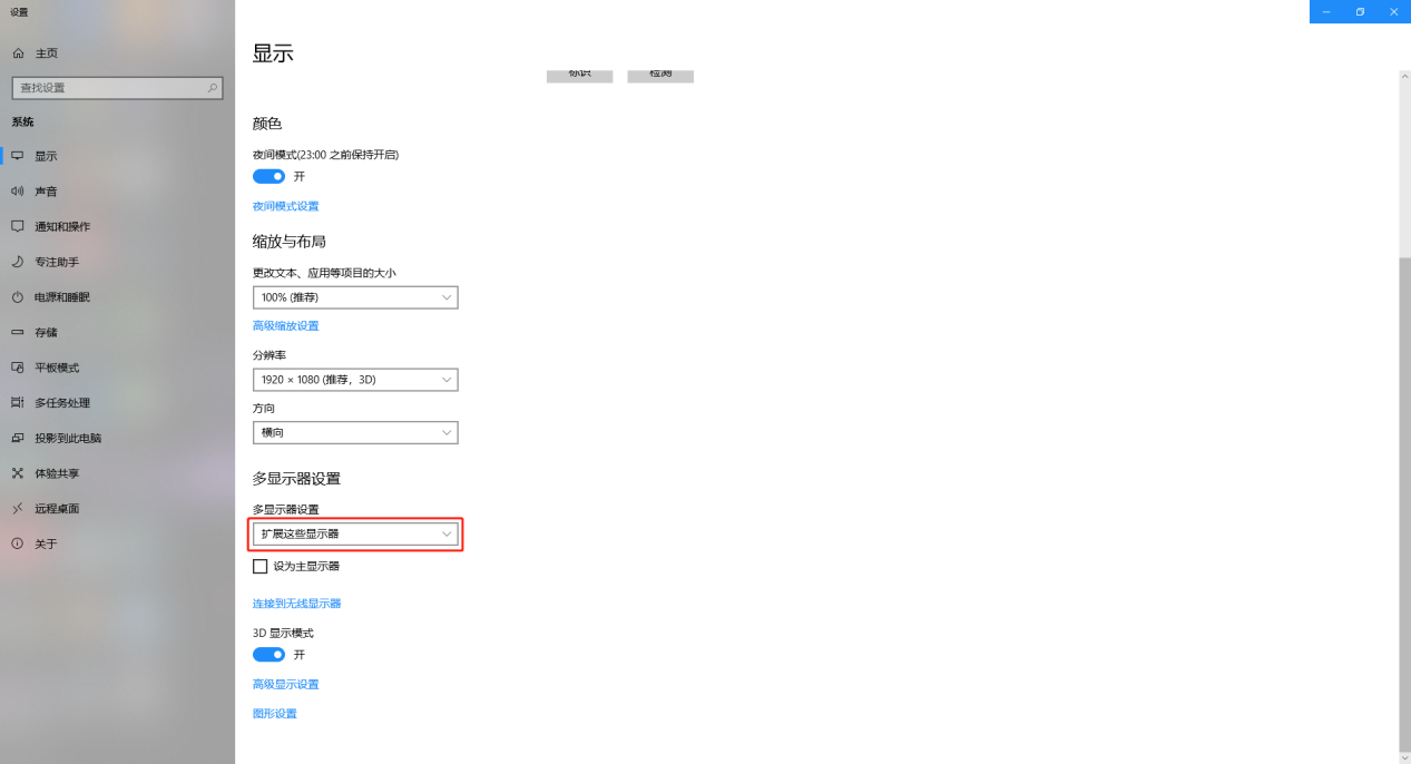 PC桌面点击右键选择显示设置,之后选择多显示器设置,向下滚动并选择扩展这些显示器。