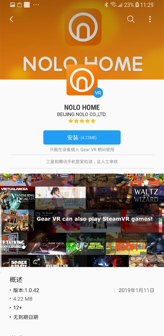 使用三星手机在三星官方应用商店内下载安装Gear VR版NOLO HOME;